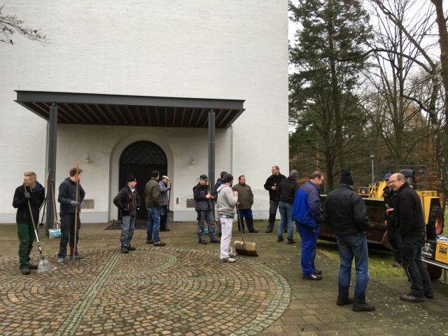 Bild: Laubharken auf dem Waldfriedhof und Kirchplatz in Riege