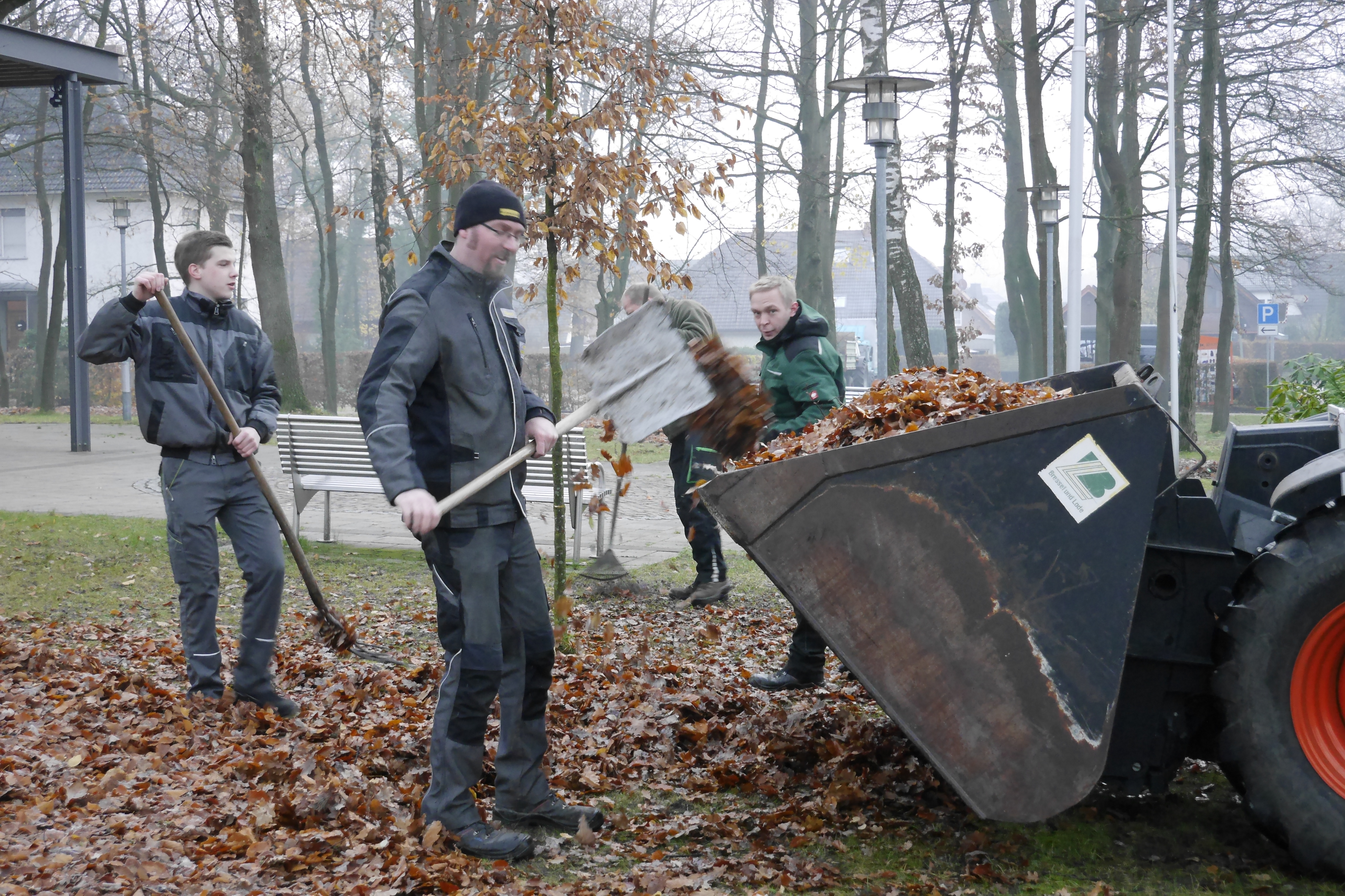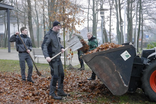 Bild: Laubharken auf dem Waldfriedhof und Kirchplatz in Riege