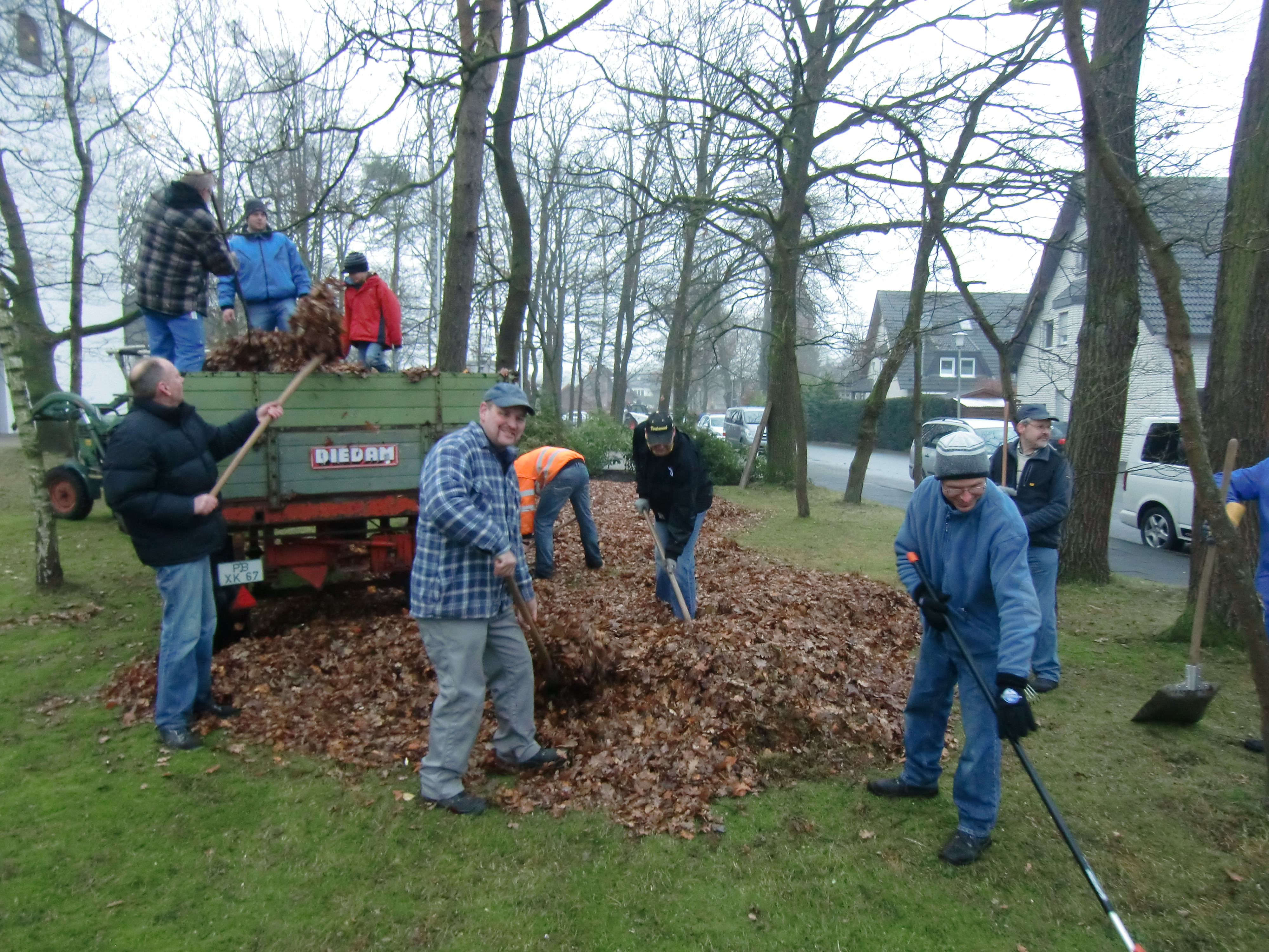 Bild: Laubharken auf dem Waldfriedhof und Kirchplatz in Riege