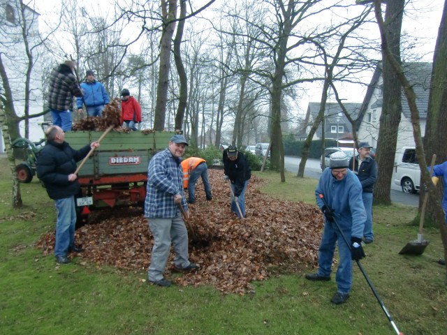 Laubharken auf dem Waldfriedhof und Kirchplatz in Riege