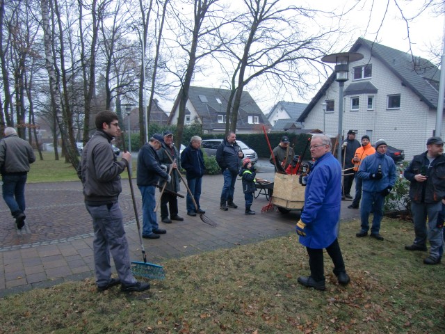 Bild: Laubharken auf dem Waldfriedhof und Kirchplatz in Riege